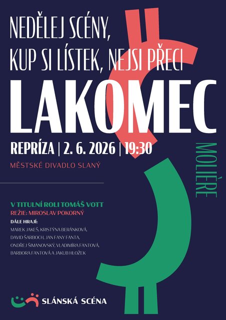 Starý lakomec Harpagon a jeho vykutálená famílie už nedočkavě přešlapují za oponou slánského divadla, těšíce se až vtrhnou na prkna, která znamenají svět a rozvibrují bránice publika, které se dozajista dostaví v hojném počtu, jak je tomu ostatně dobrým zvykem už více než 150 let.
